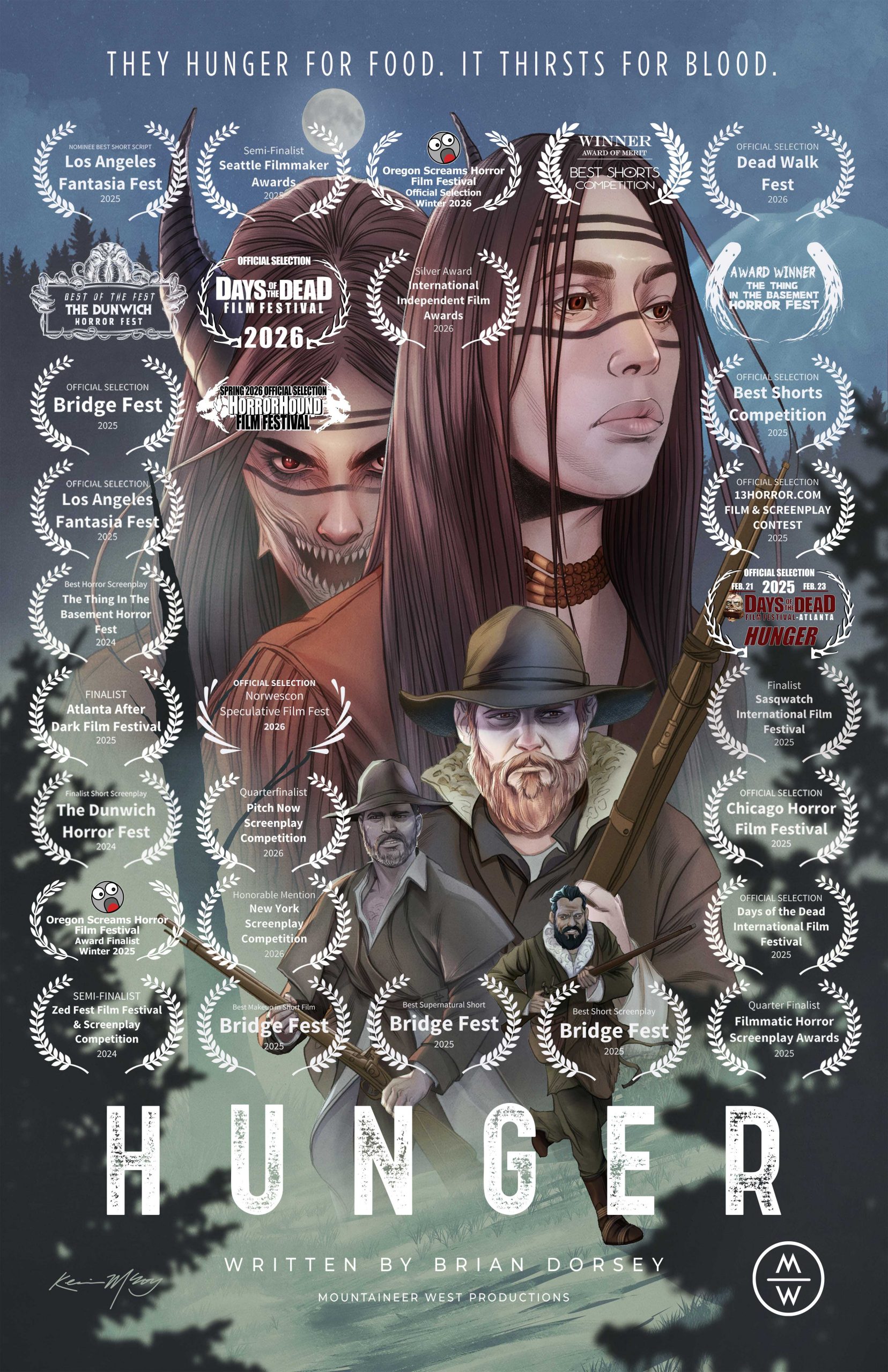 Hunger is a short film set in the same universe as the Third Testament comic universe. It also includes two scenes spoken in Lushootseed (a PNW Salish-based Native American Language–and a few lines in Italian from a creepy nun).
